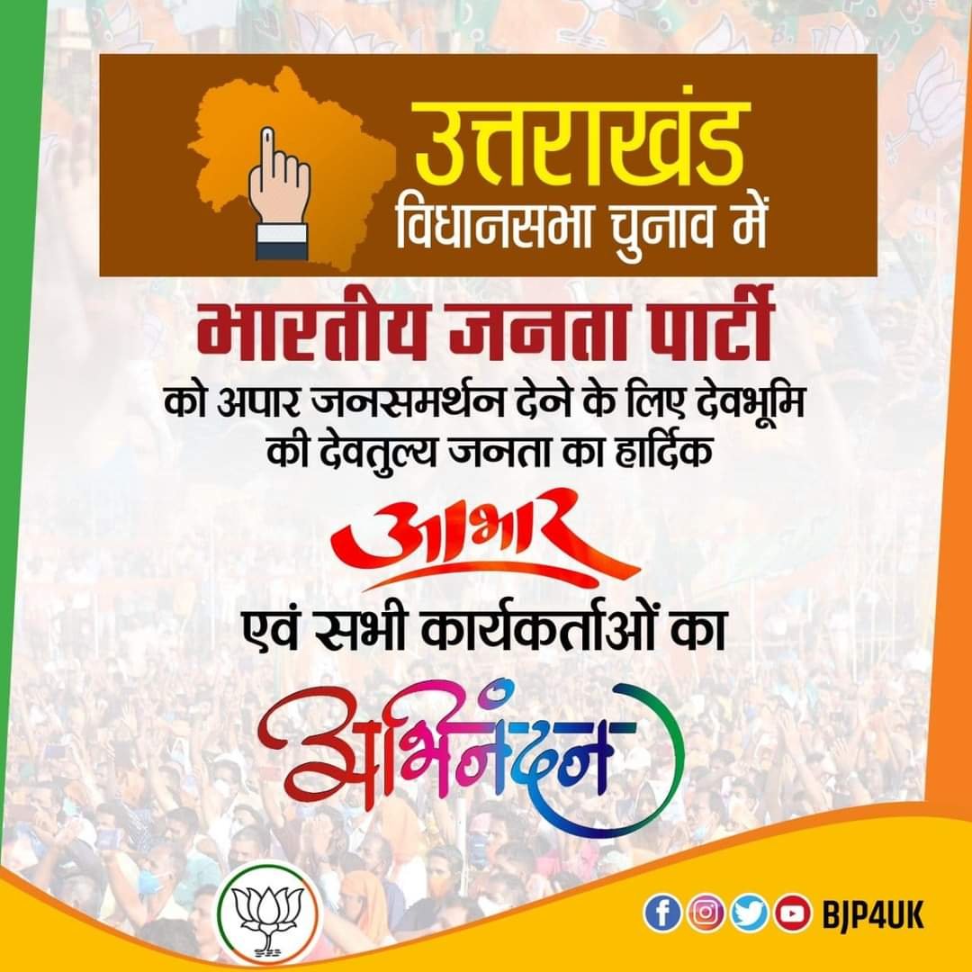 उत्तराखंड में बीजेपी को मिली जीत के पीछे राष्ट्रवाद, पीएम मोदी का प्रभाव, राशन व लाभार्थी योजनाएं और कुछ हद तक बुनियादी विकास के कामों में तेजी कारण माना जा सकता है। पंजाब के बाद इस पहाड़ी राज्य से सबसे ज्यादा लोग फौज में जाते हैं। ऐसे में देशभक्ति व राष्ट्रवाद के मुद्दे पर पहाड़ का जनमानस खुद को पीएम नरेंद्र मोदी की छप्पन इंच की छाती और मजबूत नेतृत्व वाले नेता की छवि से ज्यादा जुड़ा पाता है। माना जाता है कि पहाड़ों में महिलाओं व बुजुर्गाें ने मोदी के नाम पर वोट दिया। इस चुनाव में पहाड़ों में तेजी से होता पलायन, बेरोजगारी, महंगाई व दूरदराज इलाकों में शिक्षा व मेडिकल सुविधाओं की कमी के बावजूद लोगों ने राष्ट्रवाद, राशन व सीधे खाते में पैसे मिलने जैसे भावनात्मक मुद्दों पर ज्यादा जोर दिया।