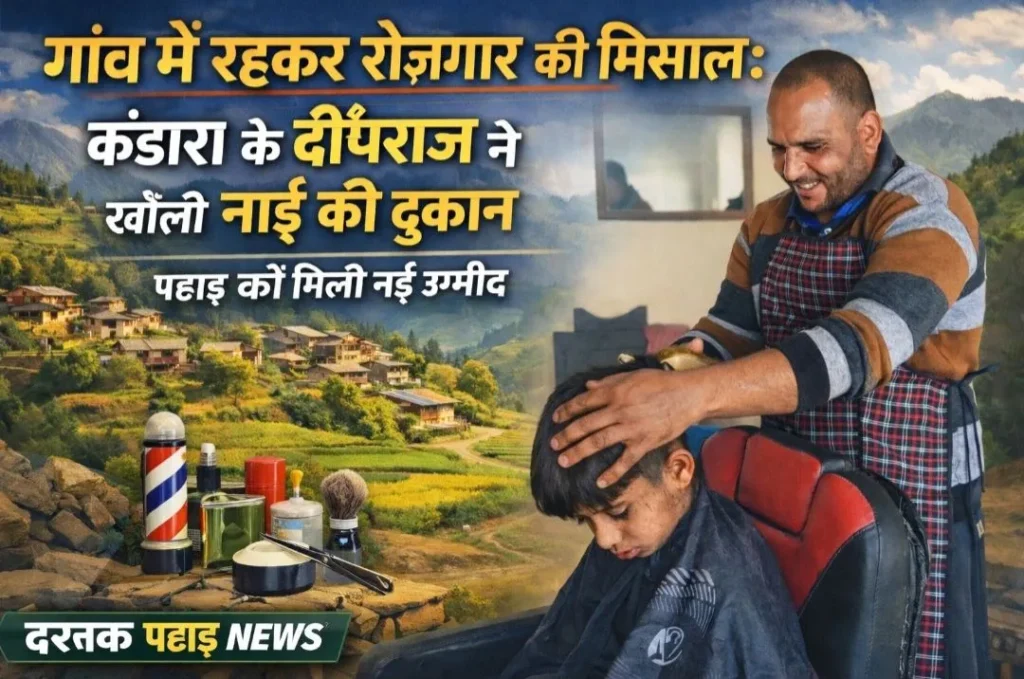 दीपक बेंजवाल। दस्तक पहाड़ न्यूज।। जहां एक ओर पहाड़ से रोज़गार की तलाश में युवाओं का लगातार पलायन हो रहा है, वहीं दूसरी ओर कुछ युवा ऐसे भी हैं जो अपने गांव में रहकर ही आत्मनिर्भर बनने की मिसाल कायम कर रहे हैं। ऐसी ही एक प्रेरक कहानी सामने आई है रुद्रप्रयाग जिले के अगस्त्यमुनि विकासखंड अंतर्गत कंडारा गांव से। कंडारा गांव के युवा दीपराज ने अपने ही गांव में नाई (हेयर कटिंग) की नई दुकान “गढ़वाली सैलून” खोलकर न सिर्फ़ स्वरोज़गार की दिशा में कदम बढ़ाया है, बल्कि गांव के अन्य युवाओं के लिए भी एक सकारात्मक संदेश दिया है। दीपराज की यह पहल ऐसे समय में सामने आई है, जब पहाड़ों में लगातार खाली होते गांव, बंद होते घर और बढ़ता पलायन एक बड़ी सामाजिक चुनौती बन चुका है।