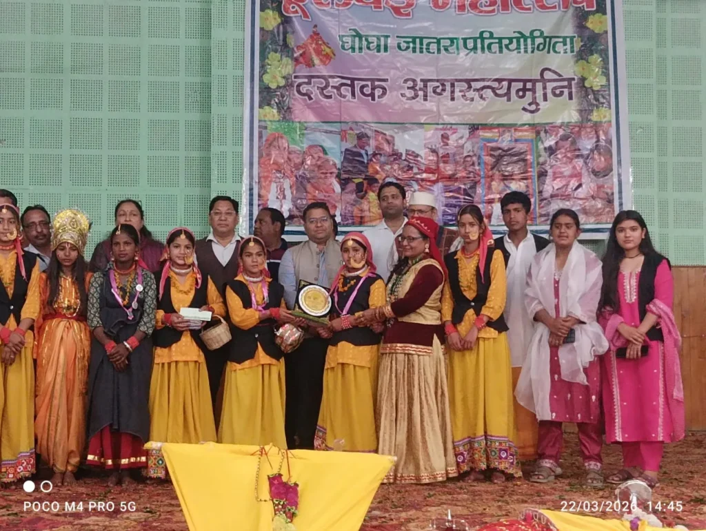 दस्तक पहाड़ न्यूज अगस्त्यमुनि।। दस्तक परिवार अगस्त्यमुनि द्वारा आयोजित फूलदेई महोत्सव एवं घोघा जातरा का भव्य आयोजन उत्साह, उमंग और लोकसंस्कृति की शानदार छटा के बीच संपन्न हो गया। जनपद के विभिन्न गांवों से आई 52 टीमों ने प्रतिभाग कर कार्यक्रम को यादगार बना दिया। बच्चों और युवाओं ने पारंपरिक वेशभूषा, लोकगीतों और सांस्कृतिक प्रस्तुतियों के माध्यम से चैत्र संक्रांति से शुरू होने वाले बालपर्व को जीवंत रूप दिया।