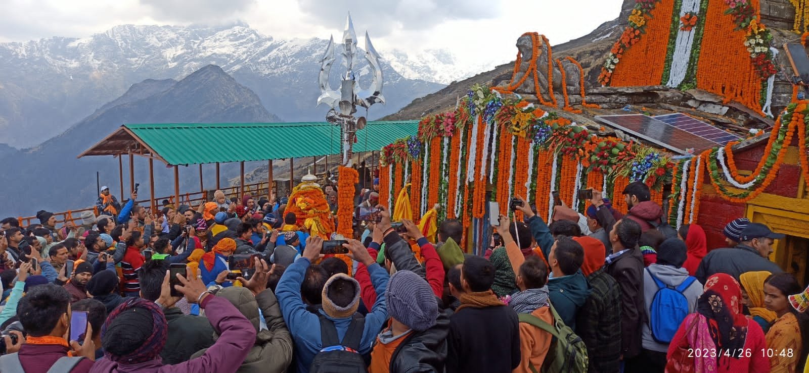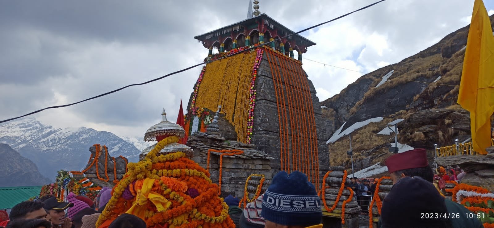 वर्फवारी भी हुई। बुग्यालों और पगडंडियों से होते हुए तुंगनाथ की चल उत्सव विग्रह डोली 10 बजकर 30 मिनट पर मन्दिर परिसर पहुंची मन्दिर की तीन परिक्रमा करने के