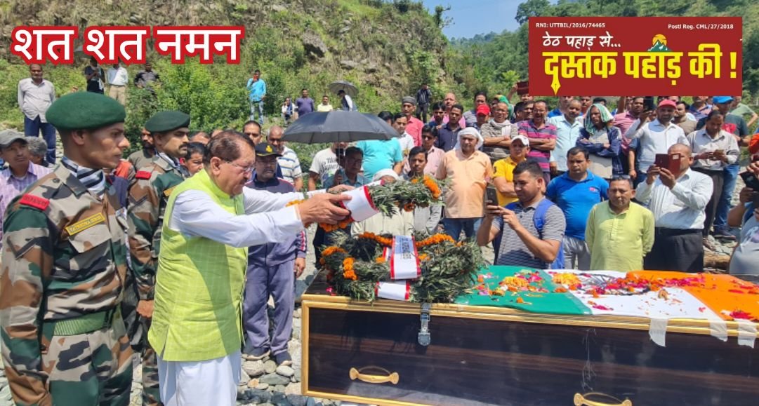 दस्तक पहाड न्यूज - शहीदों की चिताओं पर लगेंगे हर बरस मेले वतन पे मरने वालों का यही बाकी निशा होगा। भारत माता की जय और शहीद अरविन्द सिंह अमर रहे के नारों के