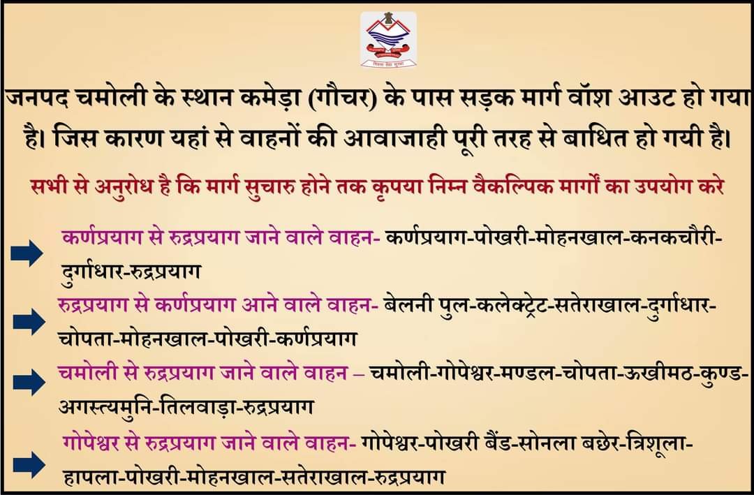 बता दें बीते रविवार को भारी बारिश के कारण जनपद चमोली की सीमा कमेड़ा जखेड़ में राष्ट्रीय राजमार्ग पर बनी डाट पुलिया सहित मार्ग वास आउट होने के साथ लगभग 100