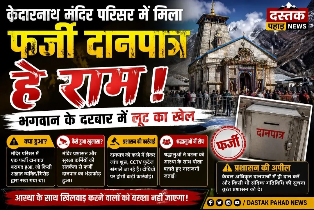 दस्तक पहाड न्यूज केदारनाथ।। केदारनाथ धाम में सरकारी सम्पत्ति को क्षति पहुंचाने वाले अज्ञात अराजक तत्वों के विरुद्ध कोतवाली सोनप्रयाग में मुकदमा हुआ दर्ज कराया गया। जनपद रुद्रप्रयाग में प्रचलित श्री केदारनाथ धाम यात्रा-2026 की व्यवस्थाओं को सुचारु बनाने के प्रयासों के बीच, धाम क्षेत्र में जन-सुविधाओं को नुकसान पहुंचाने का मामला सामने आया है। सुलभ इंटरनेशनल के सुपरवाइजर श्री मिंटू पाठक द्वारा दी गई लिखित तहरीर के आधार पर कोतवाली सोनप्रयाग पुलिस ने मुकदमा दर्ज कर विवेचनात्मक कार्यवाही प्रारम्भ करर दी है। तहरीर के अनुसार, सेक्टर केदारनाथ, हेलीपैड एवं घोड़ापड़ाव अंतर्गत स्थापित सार्वजनिक शौचालयों में अज्ञात व्यक्तियों द्वारा तोड़फोड़ की गई है। केदारनाथ धाम स्थित हाट बाजार, पीडब्ल्यूडी ऑफिस के पीछे, पंजाब सिंध भवन के पास और बेस कैंप क्षेत्र में कुल 05 दरवाजे क्षतिग्रस्त किए गए हैं। इसके अतिरिक्त केदारनाथ अन्तर्गत विभिन्न सेक्टरों में कुल 12 नल और 60 सिस्टन को भी जानबूझकर तोड़ा गया है। इस अराजक कृत्य से न केवल सार्वजनिक सम्पत्ति को भारी नुकसान हुआ है, बल्कि आम जनमानस और आये हुए यात्रियों के लिए असुविधा की स्थिति पैदा हुई है।
