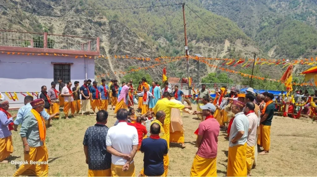 बृहस्पतिवार प्रातःकाल माली द्यूली में गरुड़ झाड़ा परंपरा का आयोजन किया गया, जिसमें बड़ी संख्या में श्रद्धालु उपस्थित रहे। इस परंपरा के अंतर्गत माँ चण्डिका बन्याथ के बलदेव की विदाई होती है, जहां भगवान नारायण स्वरूप बलदेव को गरुड़ भगवान के माध्यम से विदा किया जाता है। इसके पश्चात माँ भगवती की ब्रह्म शक्ति भक्तों की अपार भीड़ के साथ अपनी बणातोली पहुंची, जहां शीरा-बोट प्रक्रिया प्रारंभ की गई। शीरा-बोट में माँ चण्डिका के मैती जाखणी ग्रामवासियों द्वारा शीरा (बबला घास) से बर्त (रस्सी) बनाई जाती है, जो यज्ञ के दौरान प्रतिदिन तैयार की जाती है तथा पूर्णाहुति के पश्चात देवी का प्रसाद (माथम) मानकर भक्तों में वितरित किया जाता है। माँ भगवती अपनी ध्याणियों से मिलते हुए आशीर्वाद देकर यज्ञस्थली में पहुंची और कुंडगज करवाया। श्री तुंगेश्वर मंदिर समिति द्वारा यज्ञार्थी बेंजी, मयकोटी, क्यूड़ी, चौण्ड गांव के सभी ब्राह्मणों का यज्ञ के लिए वरण किया गया। कुंड पूजन के उपरांत विधिवत रूप से महायज्ञ का शुभारंभ किया गया। इस दौरान पंचकोटी क्षेत्र के विभिन्न ग्रामों से बड़ी संख्या में ग्रामीण इस आयोजन में शामिल हुए। चरणों में बैठे ब्राह्मणों द्वारा नौ दिन तक वेद मंत्रों के साथ महायज्ञ किया जाएगा।