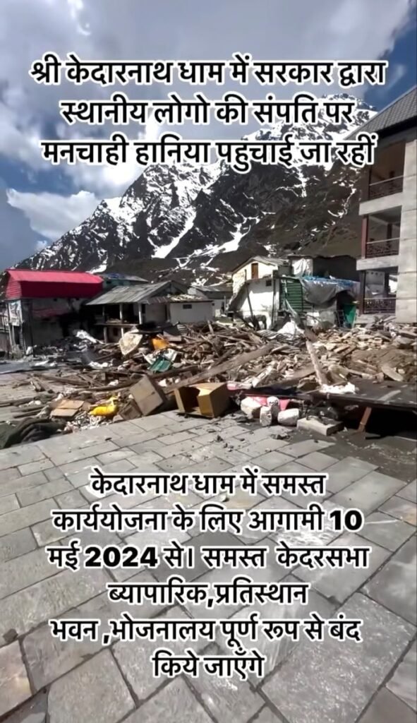 उन्होने कहा कि केदारनाथ धाम में ड्यूटी पर तैनात अधिकारियों के निर्देश पर भवनों के आगे गड्डे बनाए जा रहे हैं, जिससे उनके भवनों को क्षति पहुंच रही है।
