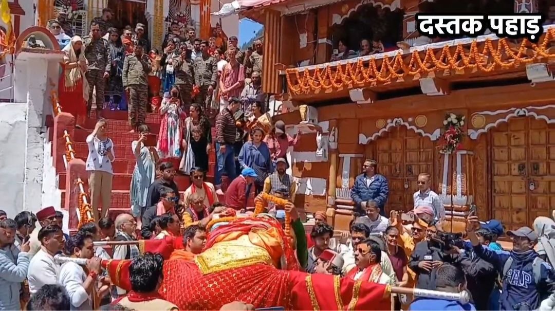 दस्तक पहाड़ न्यूज, उत्तरकाशी।। मां गंगा जी की उत्सव डोली आज पूर्वाह्न 11.57 बजे अपने शीतकालीन प्रवास स्थल मुखवा गांव से विधिवत पूजा-अर्चना के बाद गंगोत्री धाम के लिए रवाना हो गई है। डोली आज रात्रि विश्राम हेतु भैरव मंदिर (भैरवघाटी) में रुकेगी। मां गंगा जी की डोली 30 अप्रैल 2025 को गंगोत्री धाम पहुंचकर विधिवत पूजा-अर्चना के साथ श्रद्धालुओं के दर्शन हेतु विराजमान होगी।