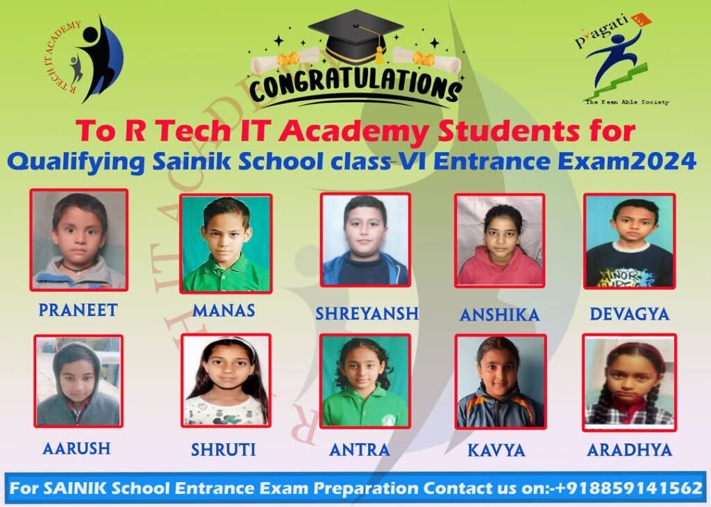दस्तक पहाड़ न्यूज अगस्त्यमुनि।। शिक्षा के क्षेत्र में पिछले 17 वर्षों से उत्कृष्ट योगदान दे रहा आर टेक आईटी एकेडमी, विजयनगर अगस्त्यमुनि इस वर्ष भी चर्चा का केंद्र बना हुआ है। संस्थान के 12 छात्रों ने सैनिक स्कूल प्रवेश परीक्षा में शानदार सफलता हासिल कर न केवल अपने परिवार और शिक्षकों को गर्वित किया, बल्कि पूरे जनपद रुद्रप्रयाग का मान भी बढ़ाया।