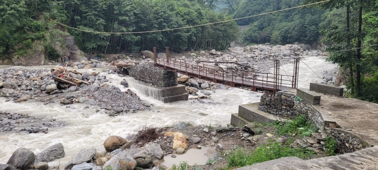 नदी का पानी आ रहा है। उन्होंने जानकारी दी कि पुल के एप्रोच को और सुरक्षित करने के लिए गैबियन लगाने का कार्य तेजी से किया जा रहा है, ताकि नदी की धाराएँ पुल