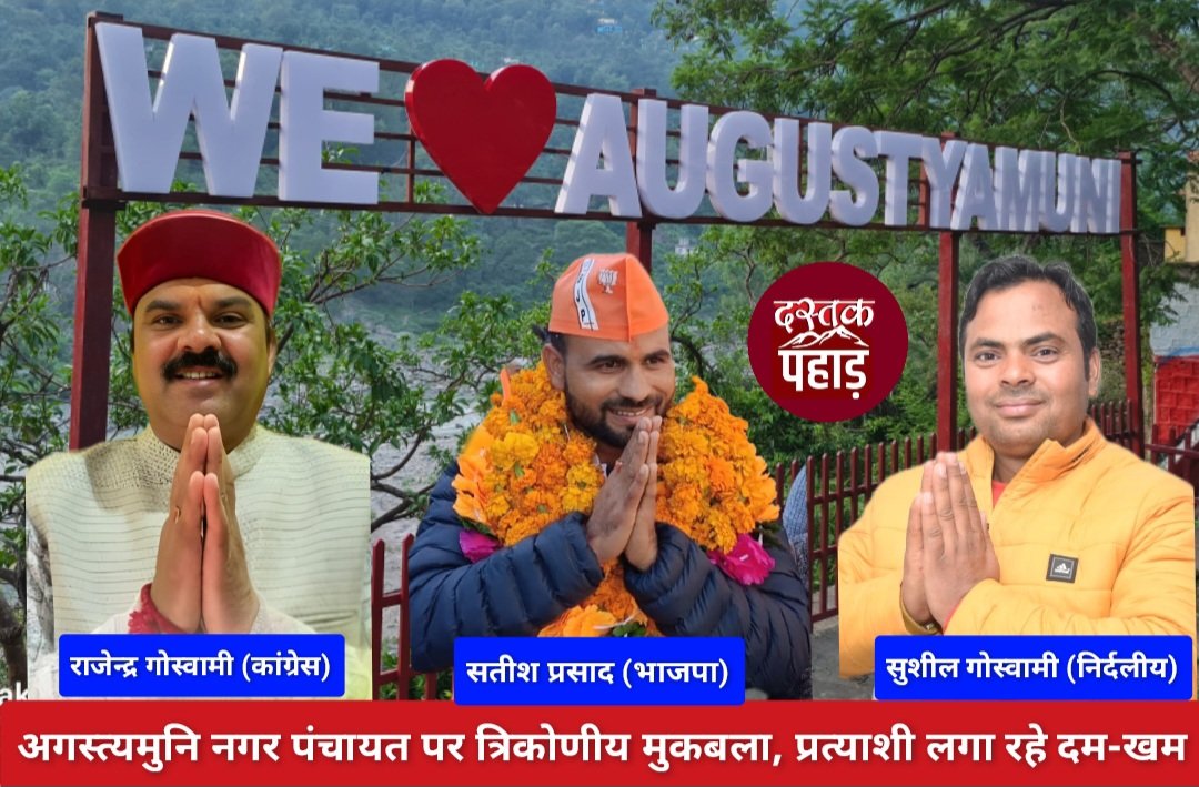 हरीश गुसाईं।। दस्तक पहाड न्यूज ब्यूरो। अगस्त्यमुनि में नगर पंचायत के चुनाव के अन्तिम दौर में सभी प्रत्याशियों ने अपनी पूरी...
