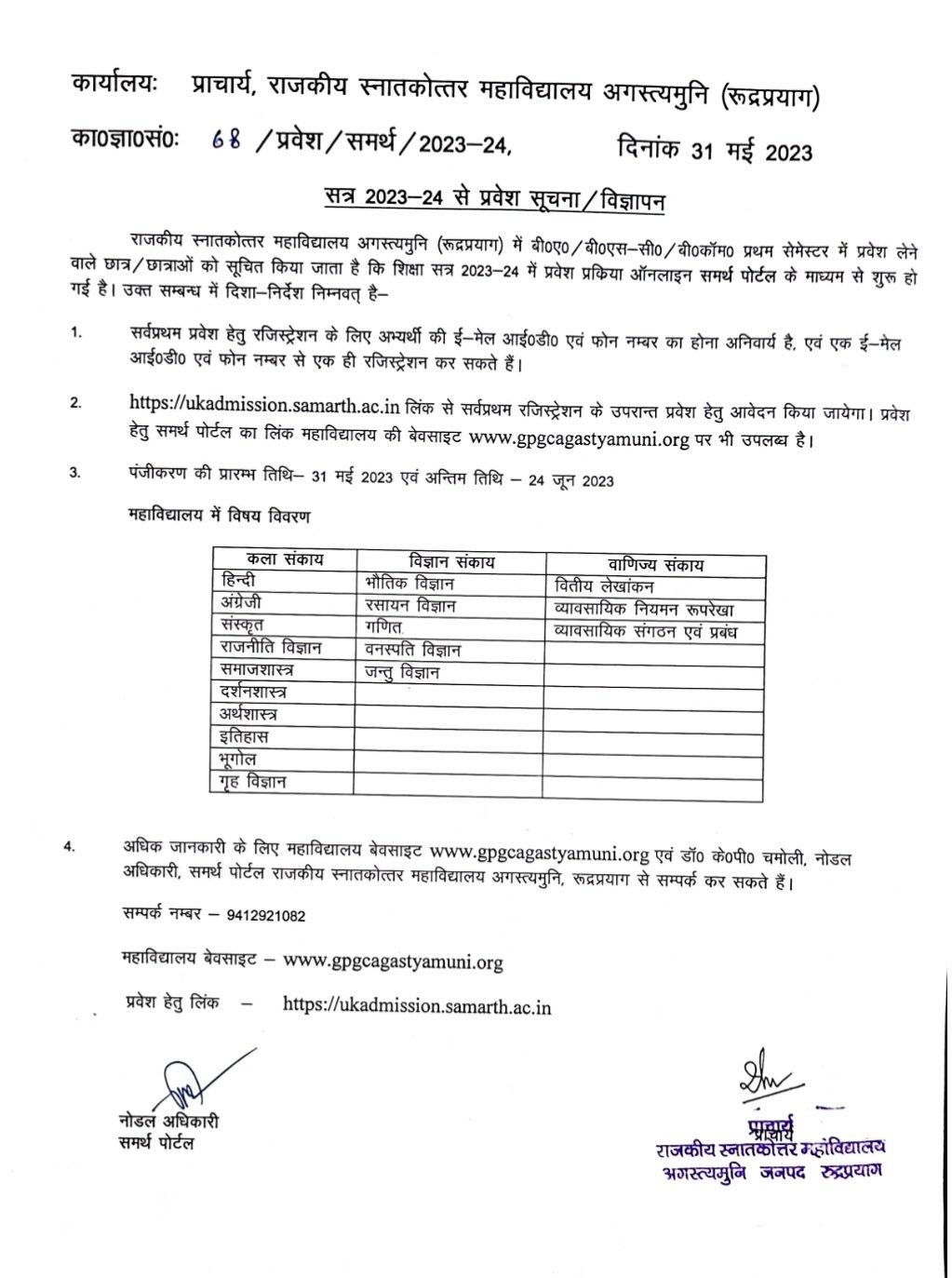 दस्तक पहाड न्यूज / अगस्त्यमुनि राजकीय स्नातकोत्तर महाविद्यालय अगस्त्यमुनि (रूद्रप्रयाग) में बीए/बीएससी/बीकॉम के प्रथम सेमेस्टर में प्रवेश के लिए अधिसूचना...
