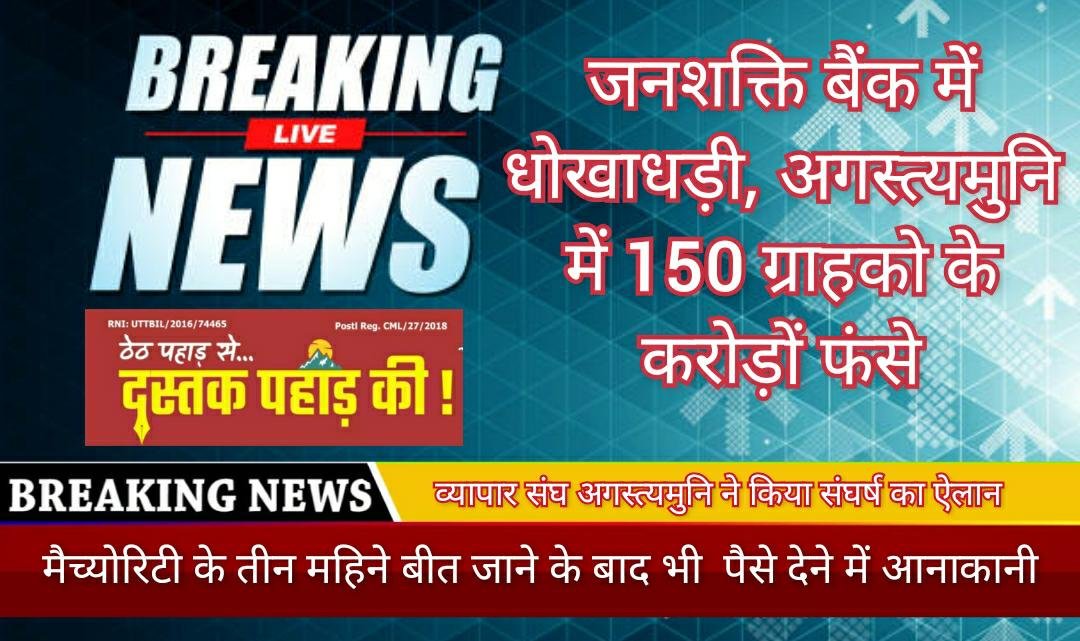 अगस्त्यमुनि में जनशक्ति मल्टी स्टेट मल्टी परपज को-ऑपरेटिव सोसाइटी में 150 से अधिक खाता धारक के पैसे फंस गये है।...