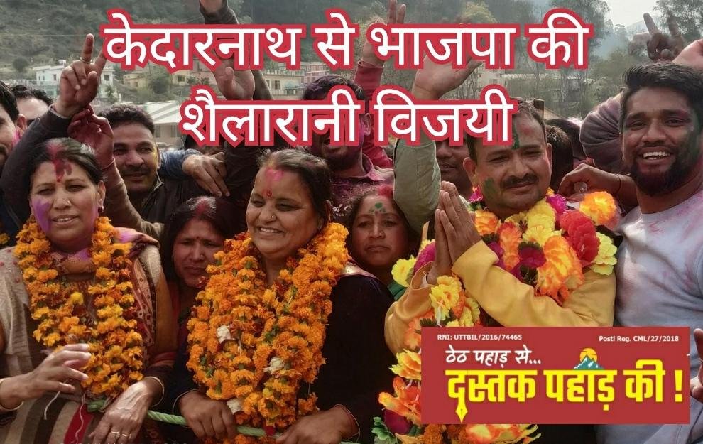 केदारनाथ विधानसभा पर भाजपा की प्रत्याशी शैलारानी रावत ने ऐतिहासिक जीत दर्ज की है, उन्होंने निर्दलीय प्रत्याशी कुलदीप रावत को...