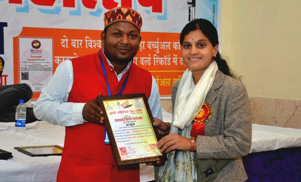 दस्तक पहाड न्यूज / रुद्रप्रयाग - केदार घाटी के मक्कूमठ गांव की युवा कवियत्री स्मिता मैठाणी भट्ट को साहित्य शिरोमणि सम्मान...