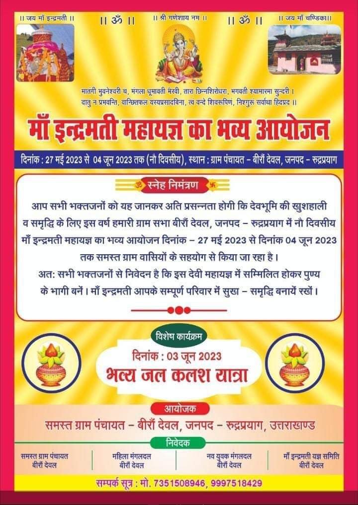 भानुप्रकाश भट्ट / बसुकेदार दस्तक पहाड न्यूज- माँ चण्डिका मन्दिर बीरों देवल में माँ इन्द्रमती के भक्तों द्वारा मां को प्रसन्न...
